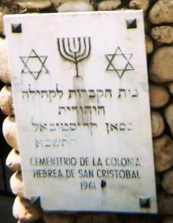 Cementerio de la Colonia Hebrea de San Cristóbal / Hebrew Cemetery Colonia de San Cristobal, Calle 16 Ciudad de San Cristóbal. The known Jewish community in town dates from 1933. The active Conservative cemetery was established in 1960. Families in other nearby cities used this cemetery. Cemetery burials are indexed and computerized. Cemetery Hours: 8:00 A.M - 6:00 P.M.   The caretaker has the key. Some burial cards have biographical data and/or next-of-kin information. All burial cards have health department information. The urban cemetery location on flat land is part of a municipal cemetery with a sign in Hebrew and Spanish.  The cemetery is reached by turning directly off a public road and open with permission of the Jewish Community. (Miembro de la Comunidade Judia) A continuous masonry wall with a locking gate surrounds the 162,50 m2 site. No separate sections. The earliest gravestone moved from another burial place dates from 1928. Thirty-five marble, granite, and limestone gravestones exist with four not in original locations are finely smoothed and Hebrew inscribed stones, flat stones with carved relief decoration and flat, low in-ground plaques. The present owner of the cemetery property is the local Jewish community and used for Jewish cemetery purposes. Properties adjacent to the cemetery are other cemeteries.  Occasional private visitors. The cemetery was vandalized occasionally in the last ten years. Past maintenance: cleaning stones, clearing vegetation, repairing wall, and repairing gate by some families in the local Jewish community. Current Care: occasional clearing or cleaning by individuals by a caretaker paid by the Jewish Congregation of Comunidad Israelita de San Cristóbal. No structures but sarcophagus and more than one ohel are present. Moderate threats: Vandalism (destruction/defacement of stones/graves and security (uncontrolled access.) The vegetation overgrowth in the cemetery is not a problem. Source: This email address is being protected from spambots. You need JavaScript enabled to view it. +584147414743.