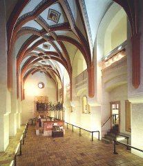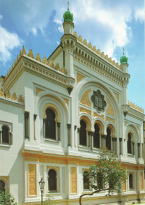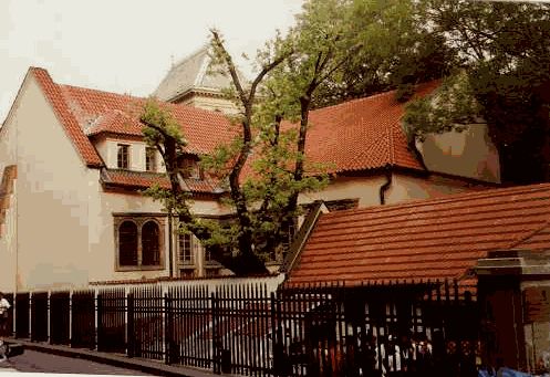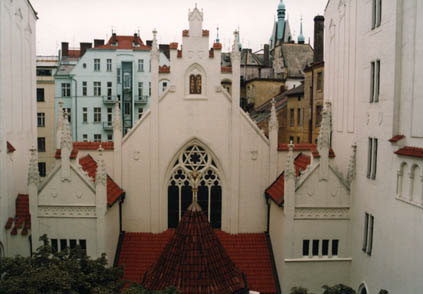 Alternate names: Praha [Cz], Prague [Eng], Prag [Ger], Praga [Pol, Rus], Prog [Yid], Cheshskaya Praga. 50°05' N, 14°28' E. Capitol of Czech Republic. See District of Prague at Wikipedia to understand the administrative divisions of the city. Prague's Jewish community dates from 1091. During the siege of Prague castle in 1142, the oldest synagogue in Prague and the Jewish quarter below the castle burned. The Jews evacuated to the right bank of the river Moldau (Vltava), the future Jewish quarter and constructed the "Altschul" ("Old Synagogue") there in 1270. In the 13th century, a new Jewish settlement was founded near the Altneuschul (the "Old-New Synagogue"), still the oldest remaining in Europe. The Altschul (Old Synagogue) in Dusni Street until the 1860's was demolished. When a new synagogue was erected later, the synagogue became the "Old New Synagogue," a grayish stone structure composed of a double-naved main room for men and annexes used as a vestibule on the south and as women's areas on the north and west. The south annex of the synagogue probably is a remodeled single-naved synagogue from 1230-40, while the larger, double-naved prayer hall portion was built at the end of the 13th century. Primarily medieval, 15th century gables and late Renaissance annexes are additions due substantial restorations and renovations over the centuries. See Carole Herselle Krinsky, Synagogues of Europe, P. 169-75 for more details on the synagogue architecture. Other synagogues include the Zigeuner Synagogue named after its builder, Salkind Zigeuner and the Vinohrady Synagogue. Formerly located in the Vinohrady district of Prague and was the largest isynagogue in Prague that was badly damaged during WWII and demolished in 1951. [February 2009]