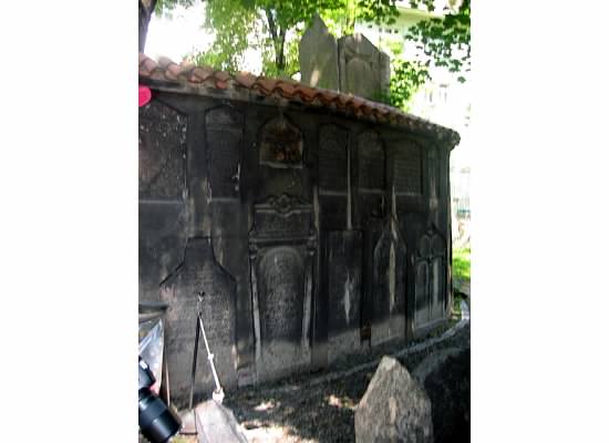 Praha - Josefov is located in Velka Praha (Greater Prague). The Old Cemetery at the center of Prague, 100 m from Old-New (Alt-Neu Synagogue in "U stareho hrbitova" street). It was also called Josefstadt; Juedische Stadt; c. Zidovske Mesto in German. Cemetery contains several layers of burials with tombstones clustered together. The oldest Jewish cemetery in Europe, open from the 15th century to the late 18th century. In 1439, Avigdor Kara was the first person to be buried here. Over the next 400 years, about 200,000 residents of the Prague ghetto were buried here. The cemetery could only hold about 10% of that amount so the tombs are layered on top of one another with one section reaching twelve layers. Two of the cemetery’s most famous tombs are Rabbi Loew (1609) and Mordechai Maisel (1601). Since 1990, the Jewish Museum of Prague has been conserving and restoring the cemetery. About 12,000 tombstones remain. See US Commission report below. [February 2009] |