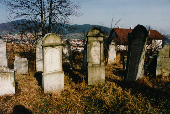Cemetery is about a quarter-mile from the edge of town and about 50 yards due S of the church on a hillside to E. There is a brand new house (1992) directly in front of this graveyard. About 50 stones exist, mostly in decent repair, though some are illegible. In 1929, a stone wall with a locked gate existed. Names: Korach, Honigsfeld, Polak, Lefkovics, Fleischer. Source: Paul Klein; pklein5ATgmail.com