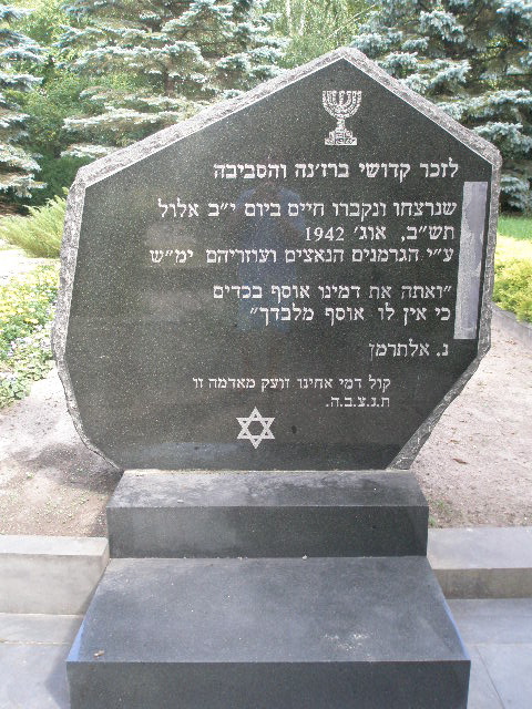 The Hebrew inscription, Berezno: "In memory of those holy martys in Berezno and its surrounding areas