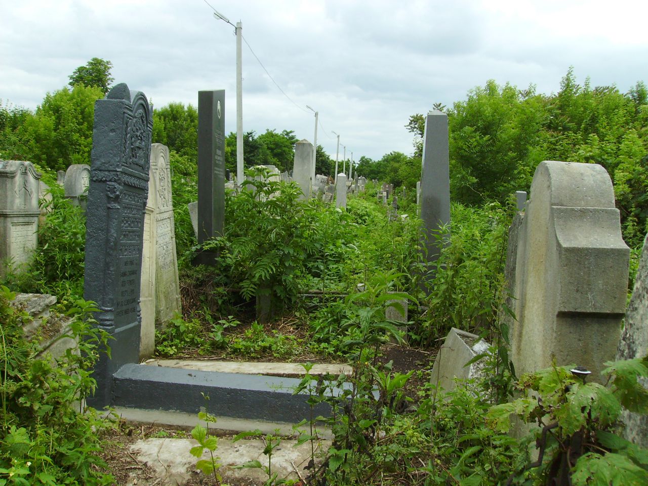The earliest known Jewish community was 16th century. 1939 Jewish population (census) was 42932. Effecting the Jewish Community were 1836 Jewish Tiphography opening, 1908 Jewish Narodny Dom discovery, and the 19th century struggles of Hasids and Reformists. Living here were Rabbi Igel(1854-1894) and Rector of Chernovitsky University Isaak Gilberg. The Jewish cemetery dates from the 19th century. Buried in the cemetery are poets Eliezer Shternbard and Moshe Altman and actors Sidetal and Goldman. The last known Jewish burial was 1990. Jewish community was Hasidic and Progressive/Reform. No other towns or villages used this unlandmarked cemetery. The isolated urban flat land has no sign, but has Jewish symbols on gate or wall. Reached by turning directly off a public road, access is open to all. A continuous fence with locking gate surrounds the cemetery. More than 50,000 graves and 50000 gravestones, most in original location with less than 25% toppled or broken, date from the 19th to 20th century. Locations of any removed stones are unknown. Some tombstones have traces of painting on their surfaces, with other metallic elements, portraits on stones and/or metal fences around graves. The cemetery contains marked mass graves. The municipality owns property now used for Jewish cemetery only. Properties adjacent are commercial or industrial. The cemetery boundaries are larger now than 1939. Frequently, organized Jewish group tours or pilgrimage groups and Jewish or non-Jewish private visitors stop. The cemetery was not vandalized in the last ten years. Jewish individuals within country cleared vegetation and fixed wall in 1980-1990. Occasionally, individuals clear or clean. Within the limits of the cemetery is a pre-burial house with tahara (table) and Prayer house. Vegetation overgrowth is a seasonal problem, preventing access. Water drainage is a seasonal problem. Moderate threat: vegetation. Slight threat: uncontrolled access, weather erosion, pollution, vandalism, and existing and proposed nearby development.