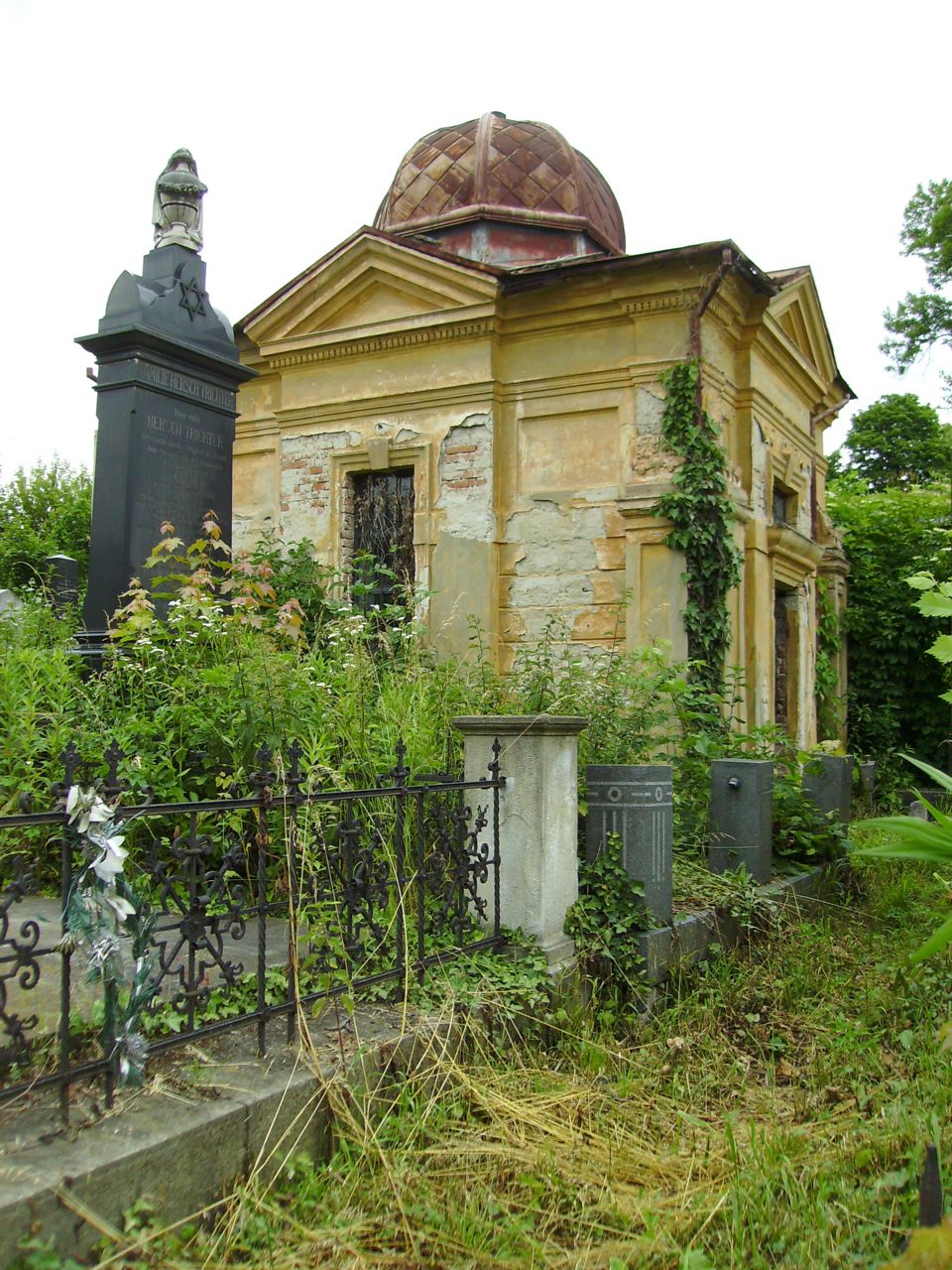 ESJF renovation of Chernivtsi (Czernowitz) Jewish Cemetery burial house (tahara.) The cemetery and the outstanding pre-burial house constructed in 1905 with funds provided by the local Jewish community was carried out by Josef Funkel as the first use of pre-cast concrete in domes in the Austro-Hungarian Empire. 112 years later, inspection showed that despite the years of neglect, the dome remains strong and will undergo the full necessary renovation. [August 2017]