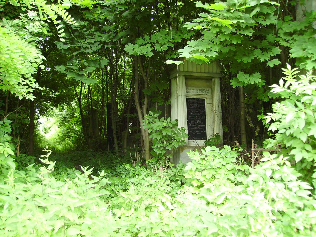 Christian Herrmann, on his Vanished World blog,"reports on remnants of this Jewish cemetery that predates the vast cemetery that still exists. Today's Jewish cemetery was established in 1866. In the same year the old cemetery, located in the west of the Jewish district - near the train station - was closed. In 1949, the site was handed over by the Soviet authorities to a textile factory, which largely destroyed the cemetery. Parts of the gravestones were then misused as construction material. But individual graves can still be found in the ground." [Mar 2014]