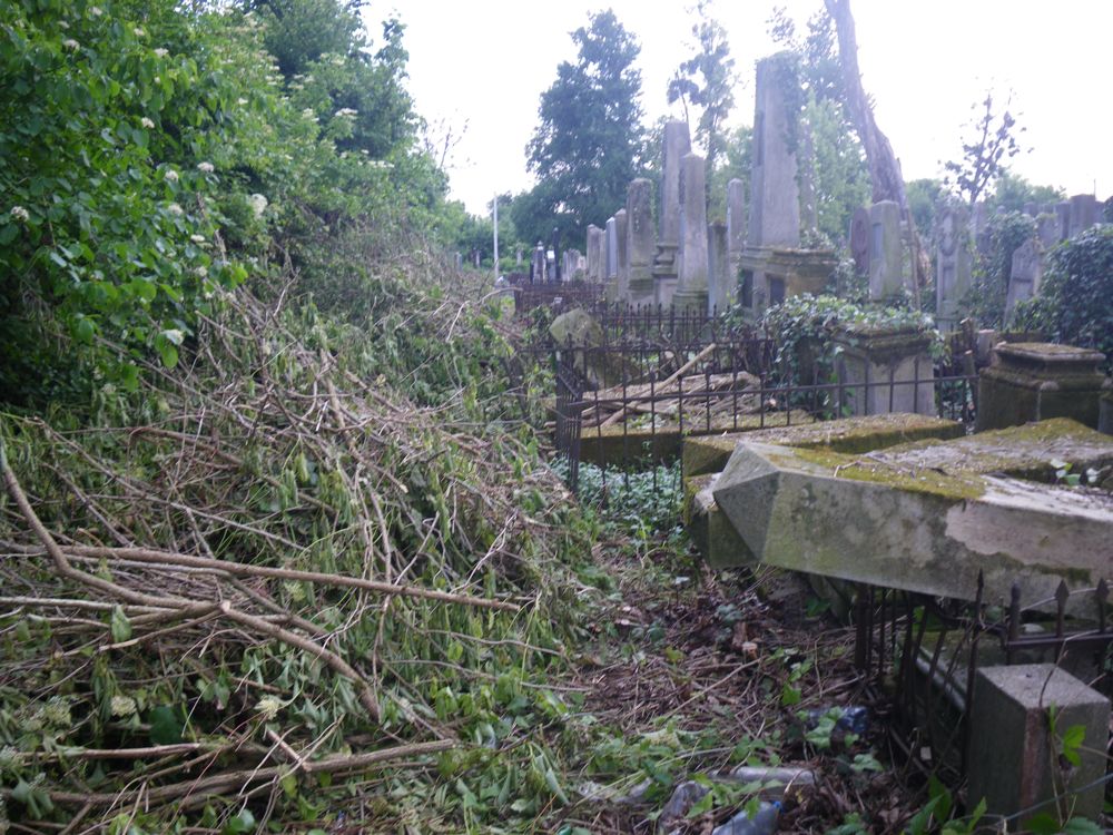 Restoration of the Czernowitz Cemetery (on Zelena Street) is underway, organized by the Czernowitz Discussion Group, and the associated Czernowitz Jewish Cemetery Restoration Organization (CJCRO). This work proceeds in conjunction with Dr. Josef Bursuk, leader of Chesed-Shushana, in Chernivtsi. See additional pictures and information here and here. As of June, 2012, >7.0 hectares have been cleared of trees, vines and other vegetation. Efforts are proceeding to clear an additional land in summer of 2012 .[Mar 2014]