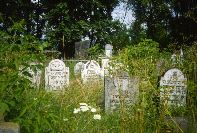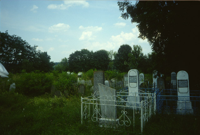 The cemetery is located at 3 km from the town-on right of the road to Bar near railway station. The Jewish cemetery was established in the 19th century with last known Hasidic burial in 1994. No other towns or villages used this unlandmarked cemetery. The isolated suburban agricultural flat land has no sign or marker. Reached by turning directly off a public road, access is open to all. A continuous fence with non-locking gate surrounds site. 501 to 5000 stones, most in original location with less than 25% of surviving stones toppled or broken, date from 19 to 20th century. Location of any removed tombstones is unknown. The cemetery has special sections for men, women, Cohanim and children. Some tombstones have traces of painting on their surfaces, iron decorations or lettering, other metallic elements, portraits on stones, and/or metal fences around graves. The cemetery contains unmarked mass graves. The municipality owns the site used for Jewish cemetery only. Adjacent properties are agricultural and residential. The cemetery boundaries are unchanged since 1939. Occasionally, organized individual tours and Jewish or non-Jewish private visitors stop. The cemetery was vandalized during World War II and occasionally in the last ten years. Jewish individuals within country and abroad did re-erection of stones, patched broken stones, cleaned stones and cleared vegetation 1945-1948. Now, occasionally, individuals clean or clear. Within the limits of the cemetery are no structures. End 19th to early 20th century, overgrown trees destroyed graves and headstones. Vegetation overgrowth is a constant problem, disturbing graves. Water drainage at the cemetery is a seasonal problem. Serious threat: vegetation. Moderate threat: uncontrolled access and vandalism. Slight threat: weather erosion, pollution, existing nearby development and proposed nearby development.