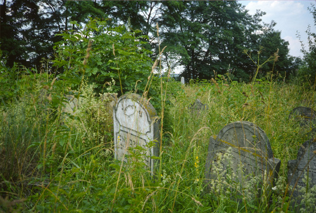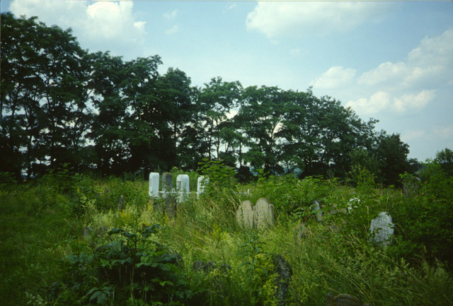The earliest known Jewish community was 1600. 1939 Jewish population (census) was 5000. Effecting the Jewish Community were Khmelnitsky pogroms 1648-9, Barsky Confederation pogrom 1768-72, pogroms during the 1918-21 Civil War, and 1941-44 Ghetto. According to legend, the "Tsadik Malka" is buried in the unlandmarked Hasidic cemetery. The isolated suburban agricultural hillside has no sign or marker. Reached by turning directly off a public road, access is open to all. A broken fence and non-locking gate surrounds the site. 101 to 500 common tombstones, about half in original location and between 25%-50% toppled or broken, date from 18th to 19th century. Location of any removed tombstones is unknown. The cemetery has special sections for men, women and Cohanim. The cemetery contains no known mass graves. The municipality owns the property used for Jewish cemetery and waste dumping. Adjacent properties are agricultural and residential. The cemetery boundaries are smaller now than 1939 because of housing development and agriculture. Rarely, local residents visit. The cemetery was vandalized during World War II and frequently in the last ten years. There is no maintenance. Within the limits of the cemetery are no structures. Overgrowth or trees covers almost entire area of the cemetery. Vegetation overgrowth is a constant problem, disturbing stones. Buildings constantly encroach and encircle the cemetery. Water drainage at the cemetery is a seasonal problem. Very serious threat: uncontrolled access and vegetation Serious threat: vandalism. Moderate threat: weather erosion, pollution, existing nearby development and proposed nearby development.